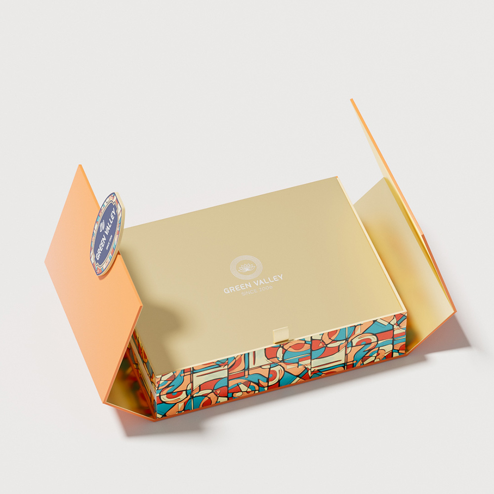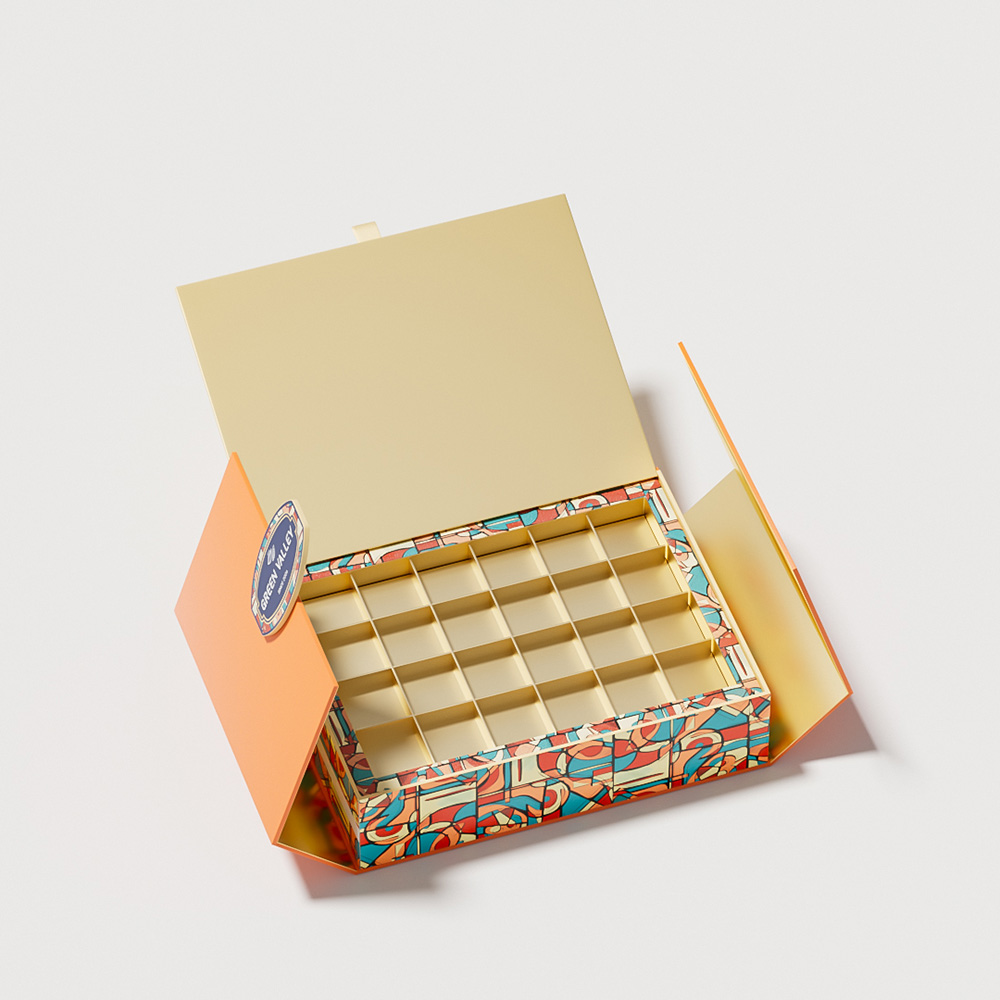 Brand Printing Magnetic Open Orange Chocolate Gift Box Packaging