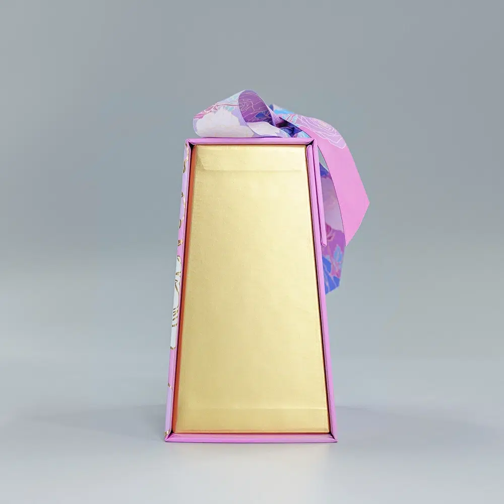 Unlike ordinary chocolate gift packaging, this design features a handbag-style structure with a sturdy metallic handle, combining practicality with aesthetics. The magnetic closure and golden inner tray add a touch of luxury, creating a box that is as much a keepsake as it is packaging. It is ideal for retail displays, festive gifting, and custom branding opportunities, giving businesses an option to stand out in competitive markets.