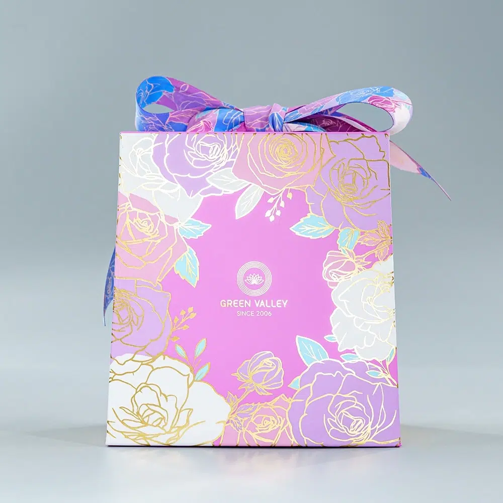 The wholesale purple chocolate gift box packaging is designed to elevate the presentation of any chocolate gift set box with a refined and contemporary style. Its deep purple tone with golden floral accents offers a balance of elegance and creativity, making it suitable for premium chocolates and assorted sweets. The rigid paperboard structure provides durability and ensures chocolates are well-protected during storage and delivery.