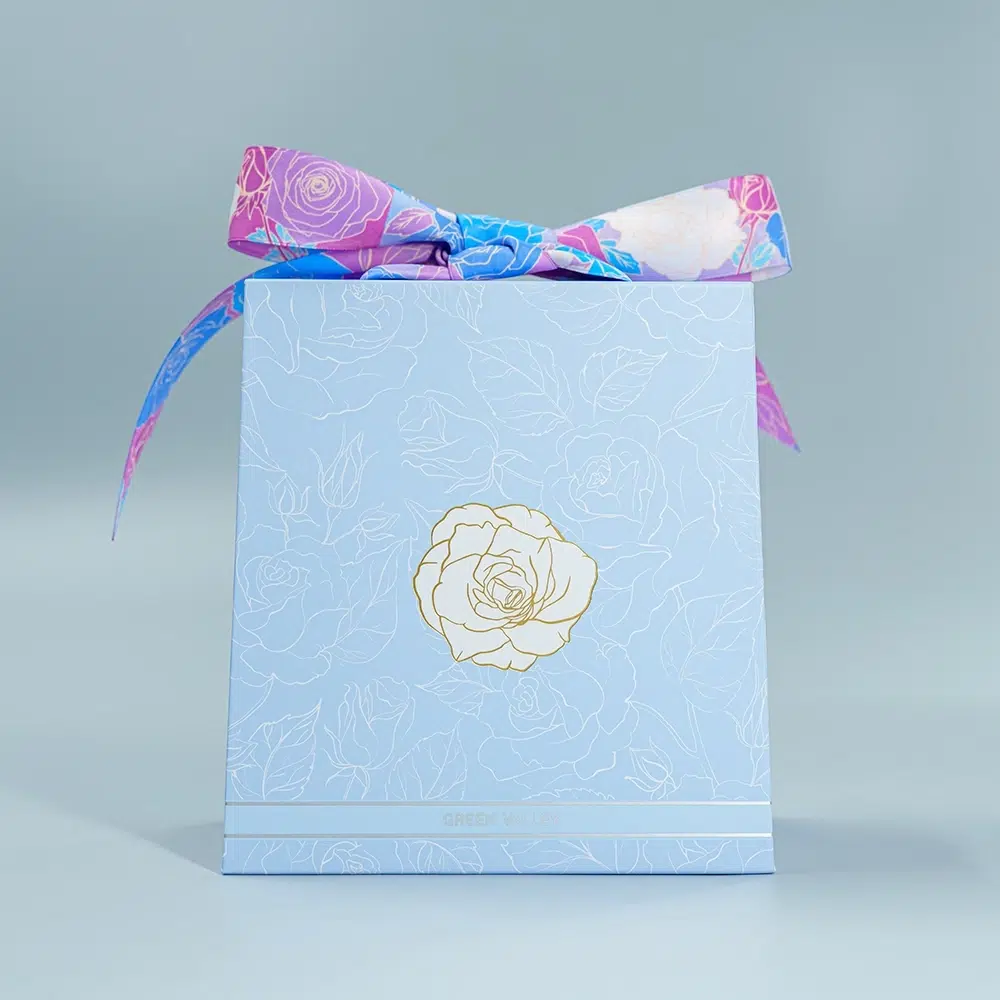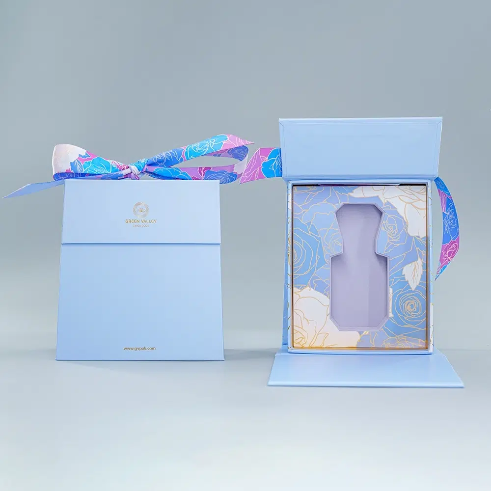 Custom Blue Floral Design Perfume Gift Box With Handle 丨 KALI