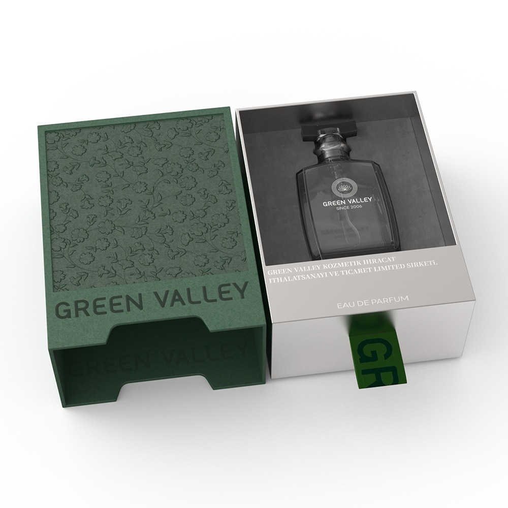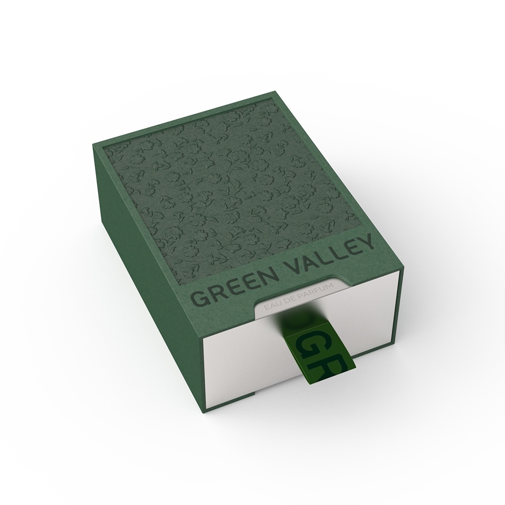 Our embossing perfume box combines rich dark green coloring with detailed embossed leaf motifs that catch light beautifully from every angle. The perfume drawer box construction features a two-piece design with a sliding inner tray that glides effortlessly to reveal the fragrance bottle within. This perfume gift box offers exceptional brand presentation with its tactile embossed surface and sophisticated color palette, making it ideal for high-end fragrance collections that demand distinctive packaging solutions.