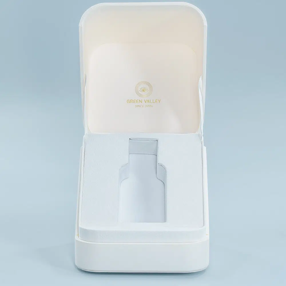 This High-end Grey Square Flip Perfume Packaging exemplifies minimalist luxury with its sophisticated pearl-grey finish and refined geometric design. The premium flip perfume box features a seamless hinged mechanism that creates an effortless opening experience, revealing perfectly molded foam inserts that cradle the fragrance bottle with precision and care.