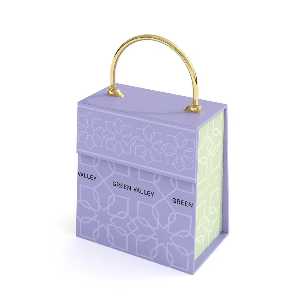 Crafted with premium materials, this magnetic perfume box packaging features a secure magnetic closure system that ensures your precious fragrances remain safely protected while providing an effortless, satisfying opening experience. The sturdy construction and refined finish reflect the quality of the luxury perfumes housed within. The distinctive bag shape perfume box design includes an elegant golden handle, creating an authentic handbag aesthetic that doubles as both packaging and a decorative keepsake.
