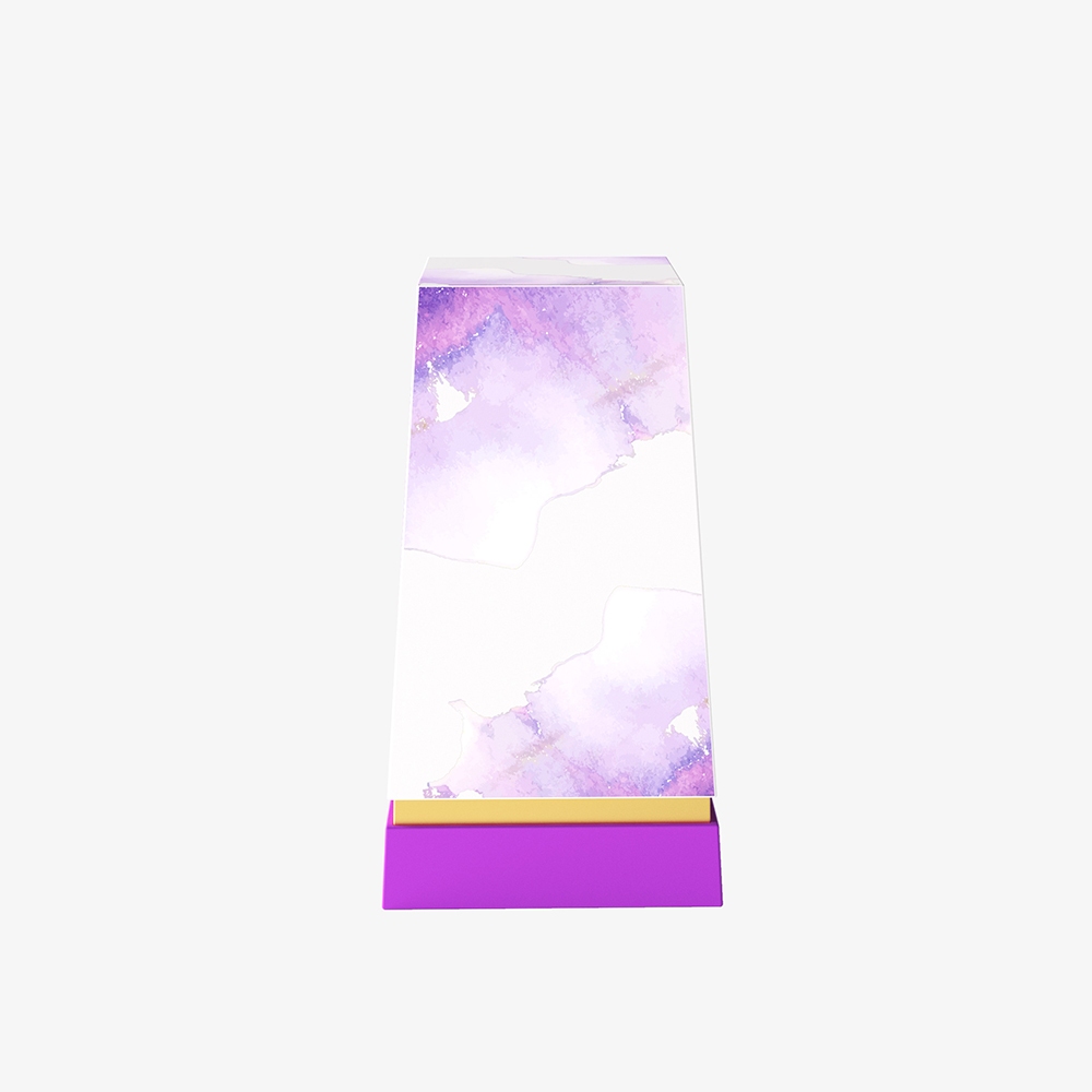 Engineered with precision-cut trapezoidal geometry, this romantic perfume gift box transforms traditional packaging into contemporary art installations. The perfume box construction utilizes high-grade transparent materials that showcase the flowing watercolor patterns without obstruction, creating depth and movement throughout the display. This luxury perfume box design features seamless integration between the clear viewing windows and solid purple foundations, while the angular architecture provides stable positioning for fragrance bottles and creates striking visual impact in both retail and personal settings.